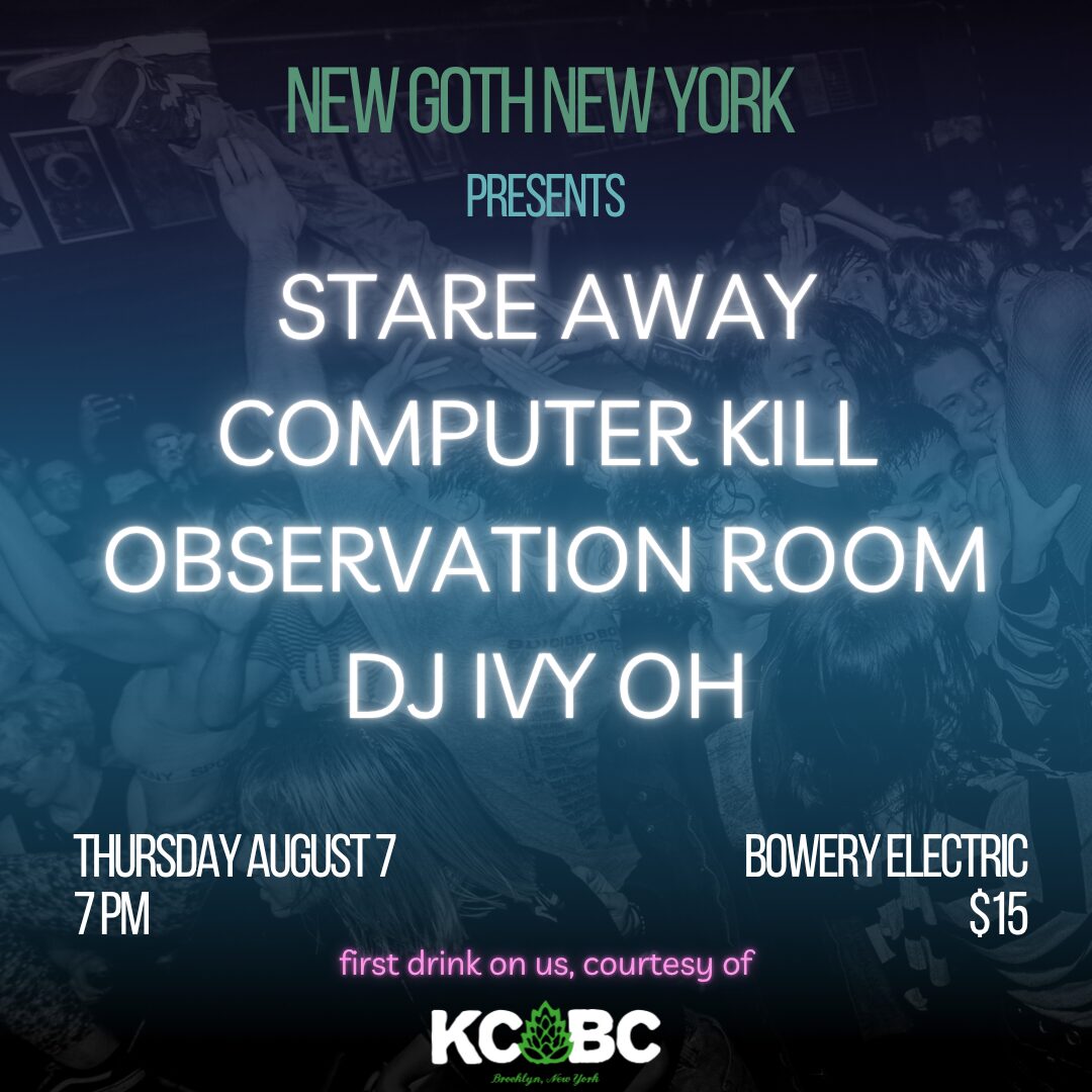 New Goth New York Presents: Stare Away | Computer Kill | Observation Room with DJ Ivy Oh Thu August 7th, 2025 Doors at 7:00 PM The Bowery Electric 327 Bowery New York, NY 10003 $17.45 ($15.00 + $2.45 fees) Ages 21+